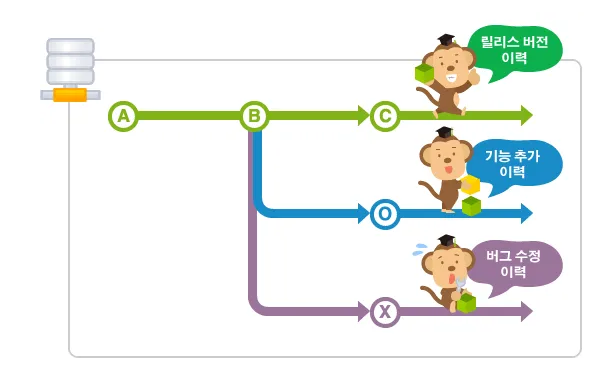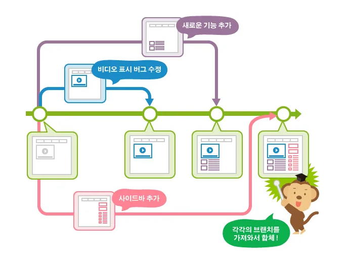 독립적으로 어떤 작업을 진행하기 위한 개념입니다. 메인 브렌치로부터 필요에 의해 만들어진 브랜치는 다른 브랜치에 영향을 주지 않기 때문에, 여러 작업을 동시에 진행할 수 있습니다.