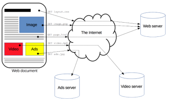 클라이언트 요청을 통해 서버는 HTML문서 같은 리로스들을 전달한다. 하나의 완전한 문서는 텍스트, 레이아웃 설명, 이미지, 비디오, 스크립트 등 불러온 하위문서들로 재구성된다.