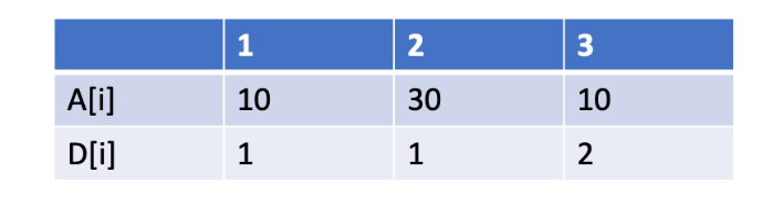 먼저 배열 A[1], A[2], A[3]을 보게 되면, A[2]보다 A[3]가 작기 때문에 D[3] 값을 D[2]+1로 해준다.