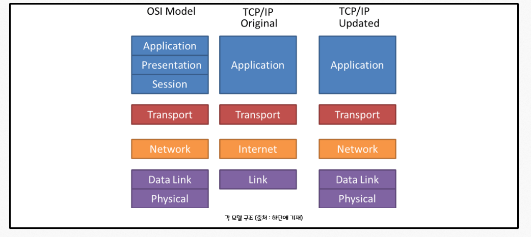 - 통신 과정을 7단계로 나눴습니다. (a) 물리계층, (b)데이터링크, (c)네트워크, (d)전송, (e)세션, (f)표현, (g)응용