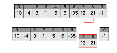 두번째 예시를 보면 중간에 index 5가 음수이지만, index 7까지 합한 것이 최대값임을 알 수 있습니다. 즉 음수와 상관없이 연속적으로 선택한 수의 합 최대값을 찾으면 됩니다.