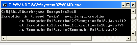 - method2()는 method1()에게 예외처리를 요청했으며, method1()은 main에게 예외처리를 요청하였습니다.