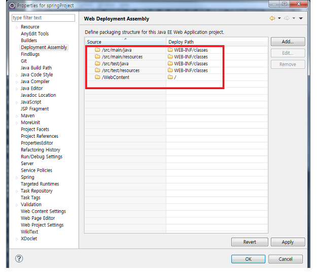 - 결론은 Deployment Assembly는 tomcat 플러그인 웹 프로젝트 가상 배포 장소에 배포하게 될 디렉토리 맵핑 정보를 관리하는 메뉴입니다.