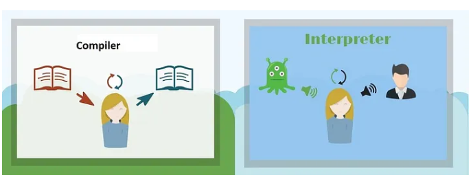 인터프린트 언어는 사람이 작성한 코드를 그대로 컴퓨터에게 전달하면 통역을 해주는 프로그램, 즉 인터프리터가 실시간으로 컴퓨터에게 이걸 읽어줘서 일을 시키는 것입니다.