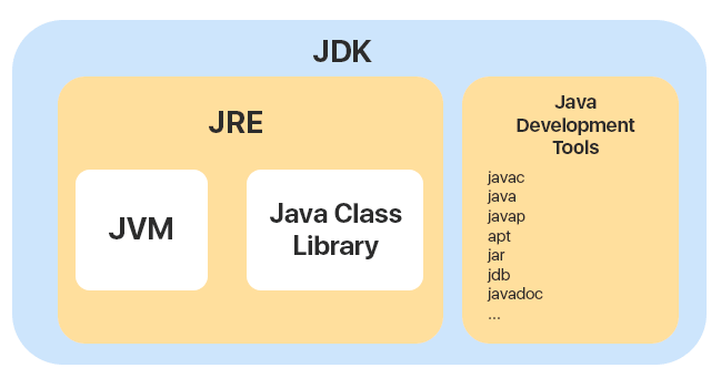 JDK는 자바 개발 키트의 약자입니다. 컴파일러, 디버거, JAR, 프로파일러가 포함되어 있습니다.