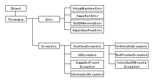 자바에서는 실행 시 발생할 수 있는 오류(Exception, Error)를 클래스로 정의하였다.