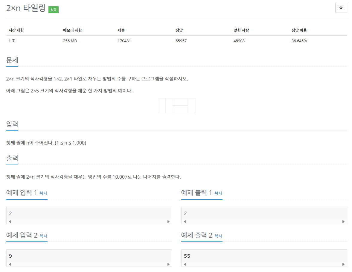 D[i] 2 X i 전체 타일을 2x1 타일 이나 2x2 타일로 채우는 방법의 수